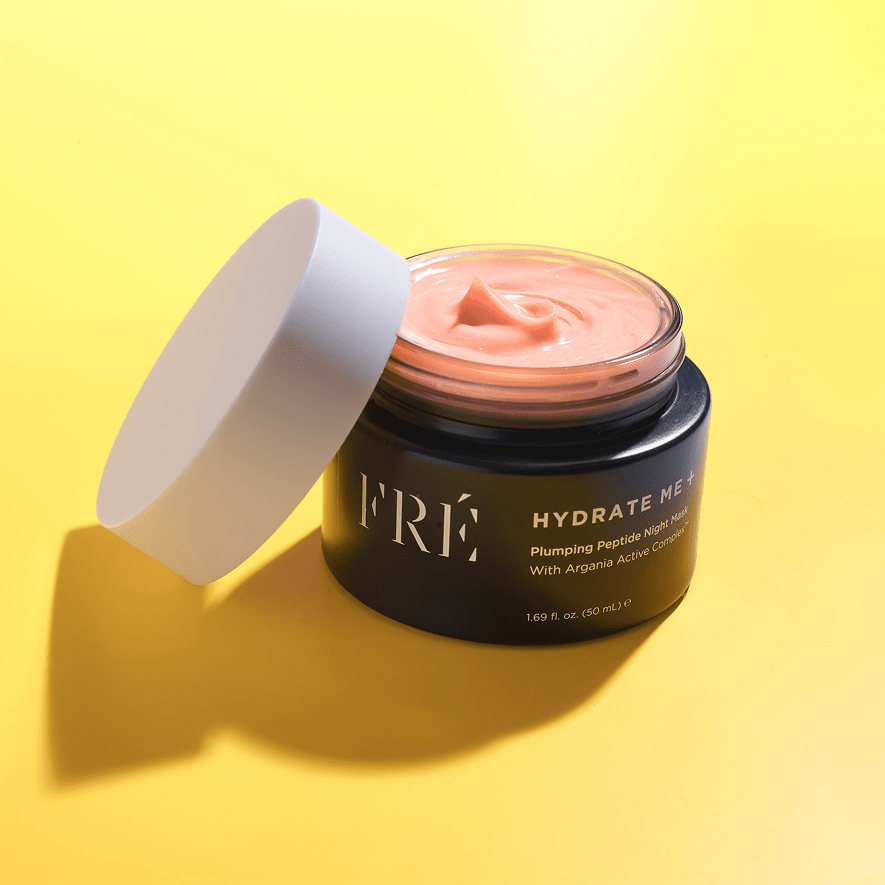 HYDRATE ME + treats skin with FRÉ’s patented antioxidant complex (Argania Active Complex™), fighting premature aging due to UV rays and other environmental aggressors. HYDRATE ME + contains sea buckthorn oil, prebiotics and peptides to boost collagen production, reduce skin sensitivity, and restore the skin barrier. Use this facial in a jar 2-3 times per week. Luxuriate in the natural, delicate rose and ylang-ylang scent of this dreamy, light pink cream as the last step in your beauty ritual.